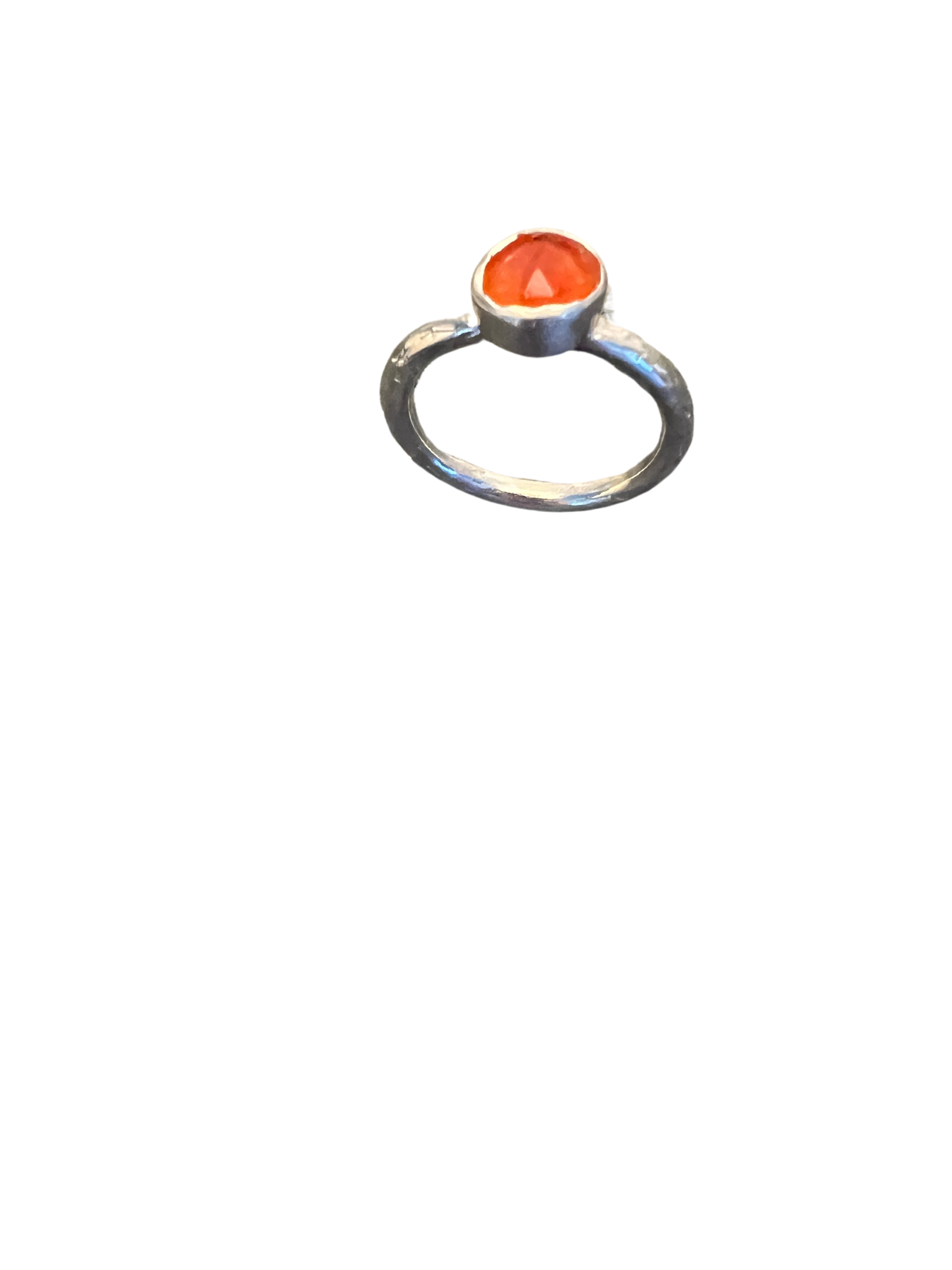 Hammered 925 Sterling Silver band. Facet cut Carnelian stone in pure silver bezel setting.