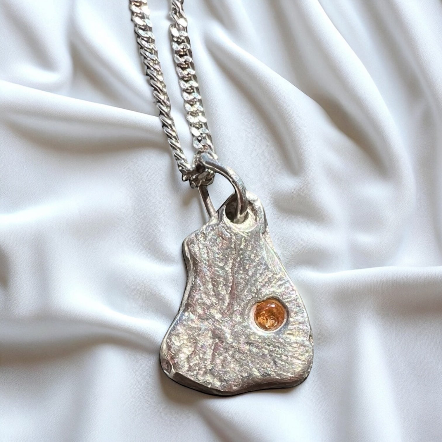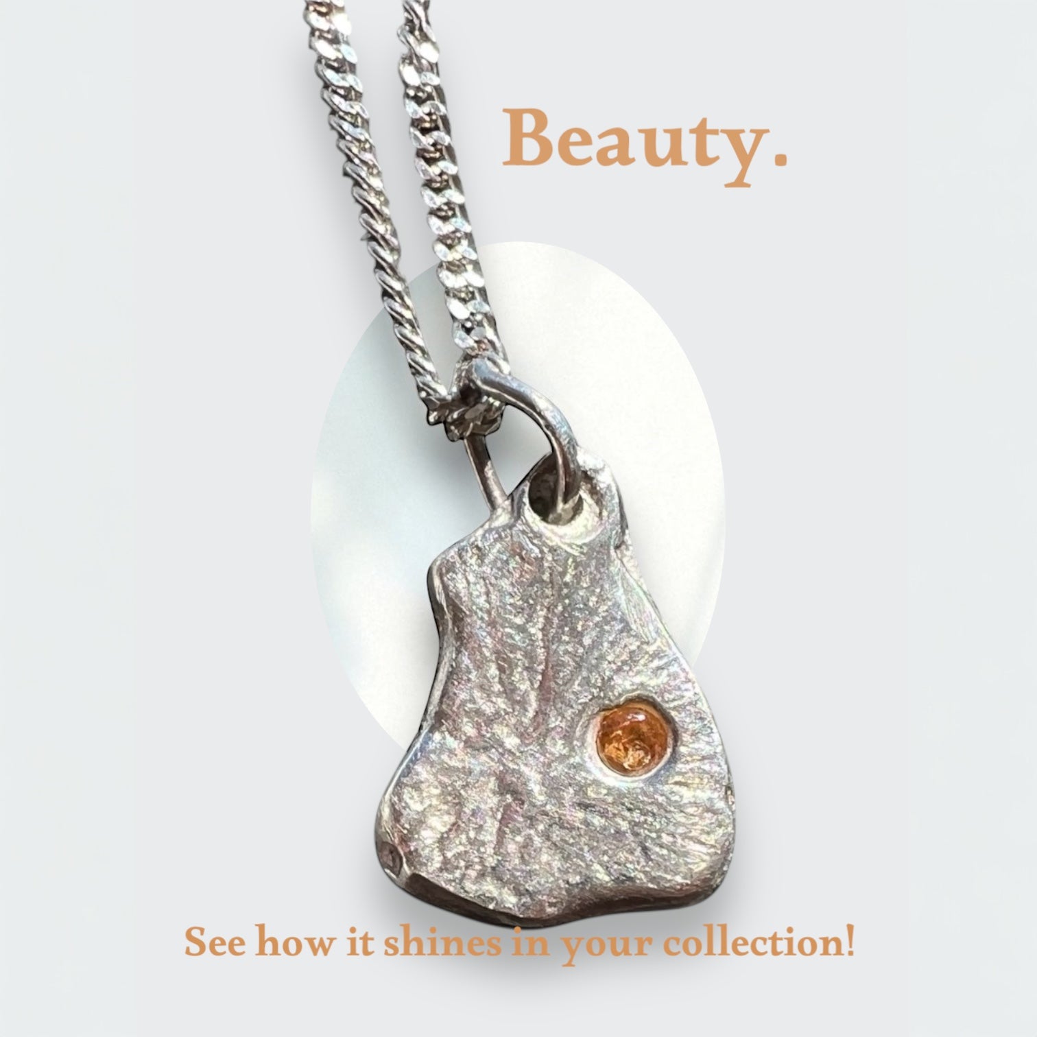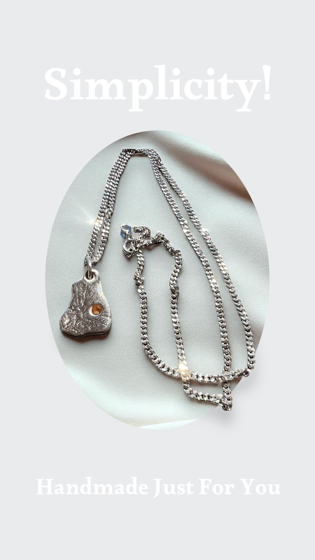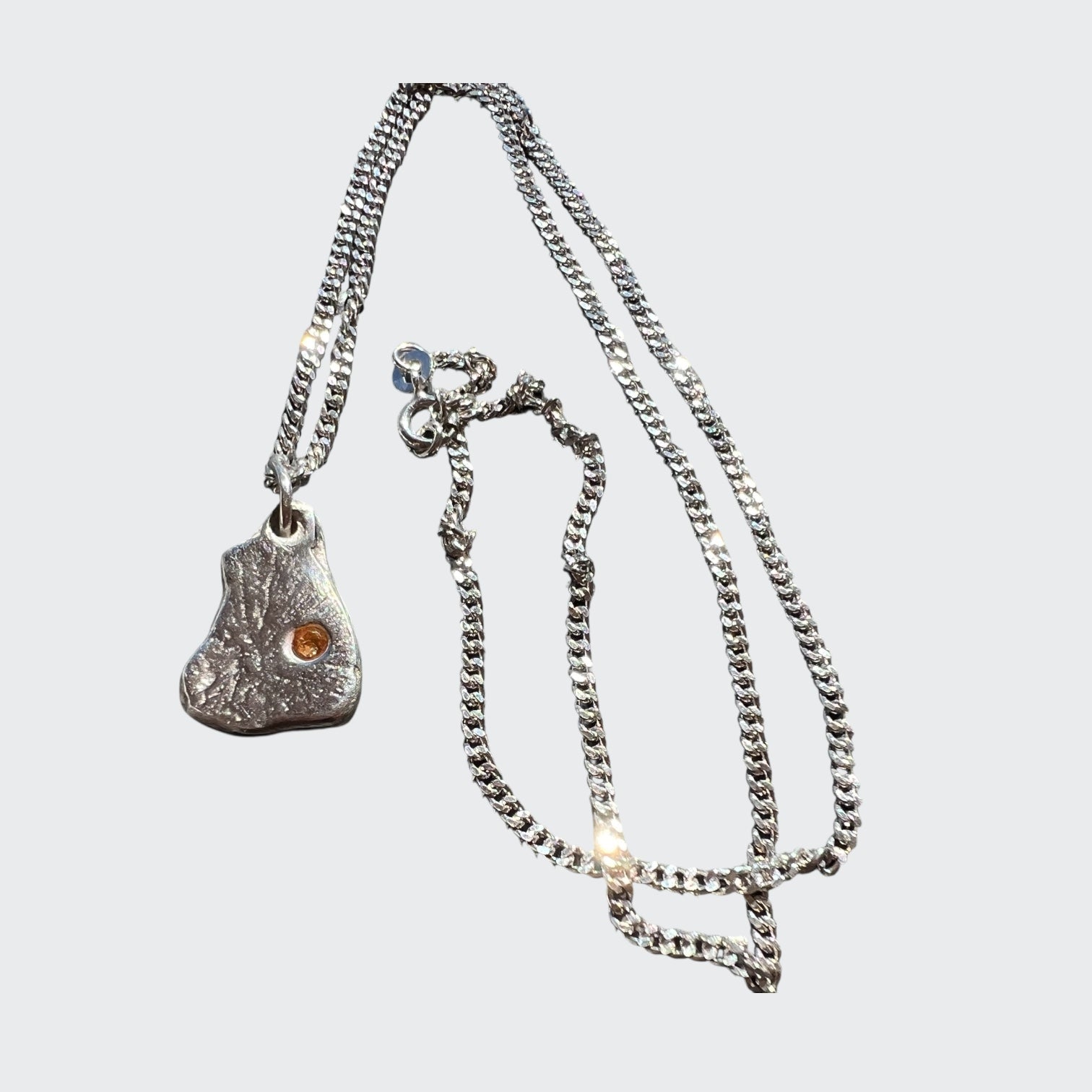 • Material: Pendant - 925 Sterling Silver with a cut sapphire - Colour Tangerine . Includes: 50cm sterling silver chain