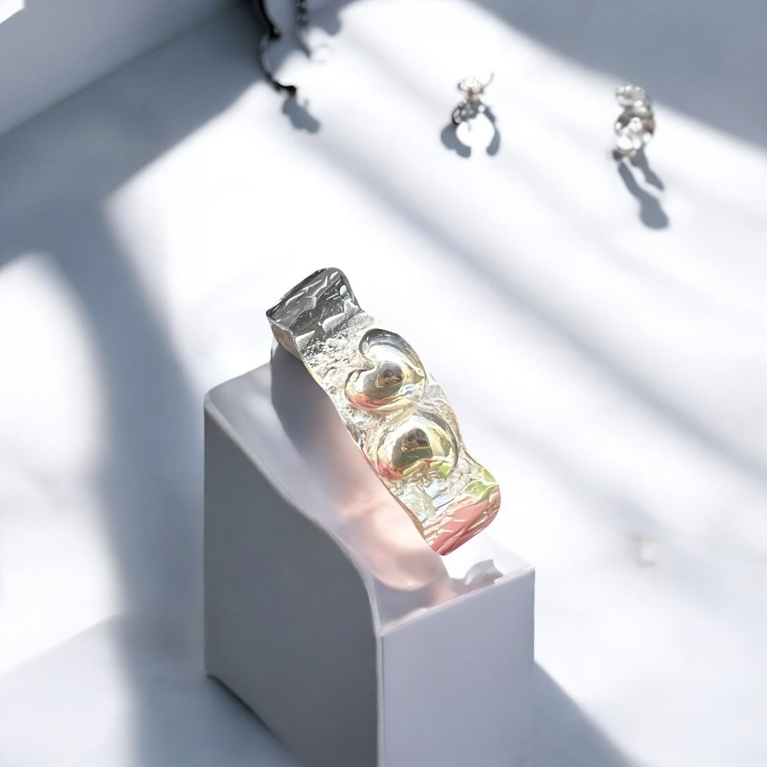 "Mollymook” My inspiration for this ring - The 2 hearts celebrating Mother’s Day. The curves represent the waves rolling in on the surf beach to the sweeping golden sand